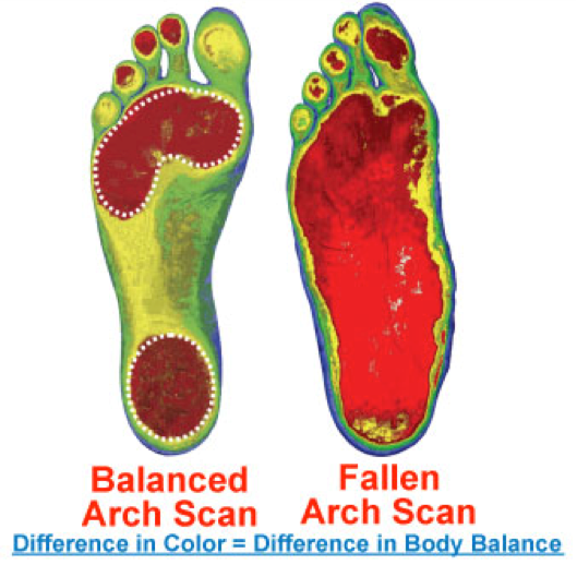 After your foot is scanned while you are standing, a color photo of your feet will show where the pressure travels through your feet.